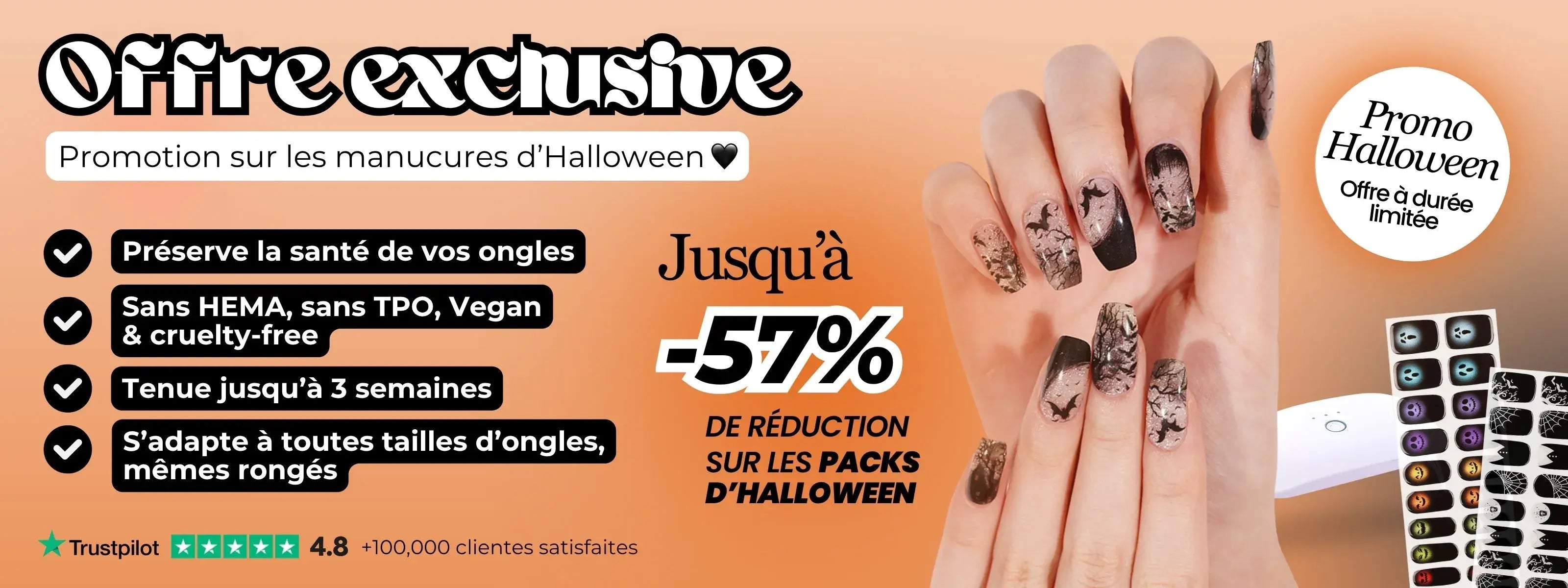 Profitez de jusqu’à -57% de réduction sur nos packs composés de designs d’Halloween. Une manucure ensorcelante dès 5,98€.