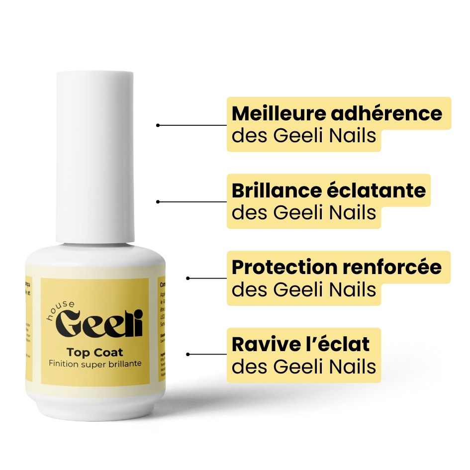 Le Geeli Top Coat prolonge la tenue de vos Geeli Nails en les protégeant contre les éraflures et les petits chocs du quotidien.
